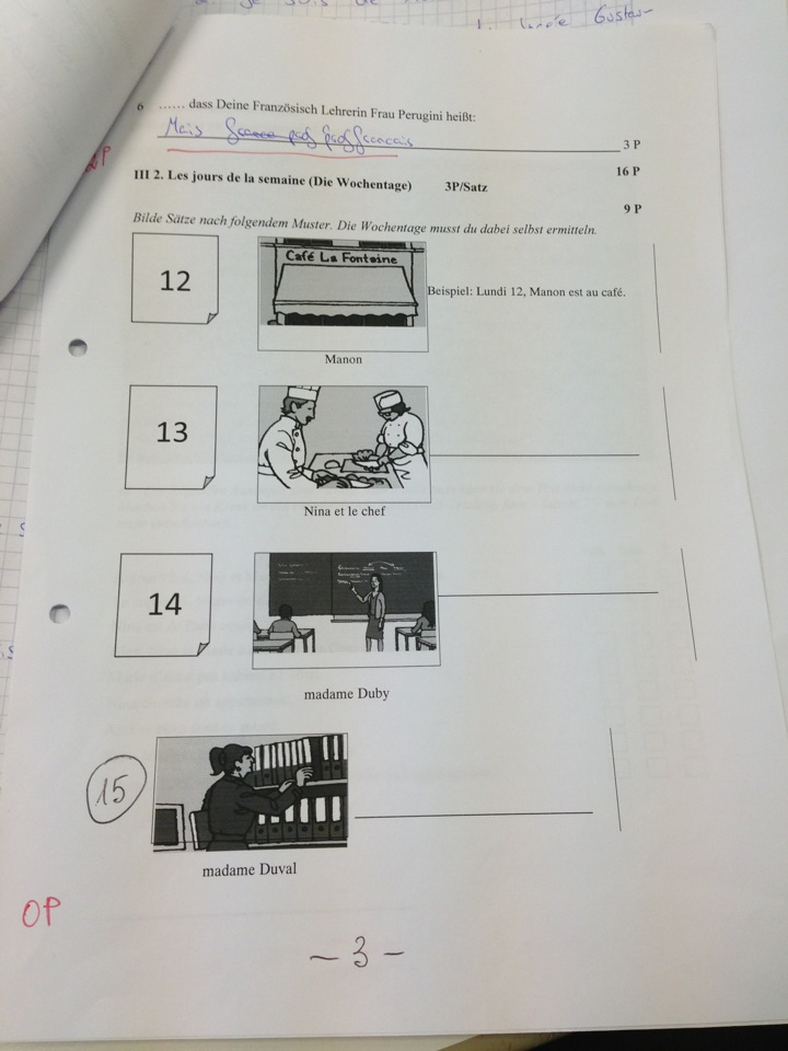 Französich Wochentage in Sätze nennen und dabei beschreiben was auf dem Bild passiert