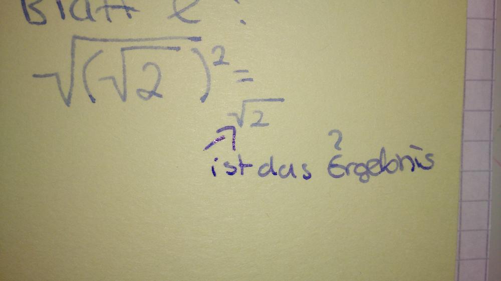 ist die Umkehrfunktion zum "hoch-2-nehmen".In deinem Beispiel fällt also die untere Wurzel
