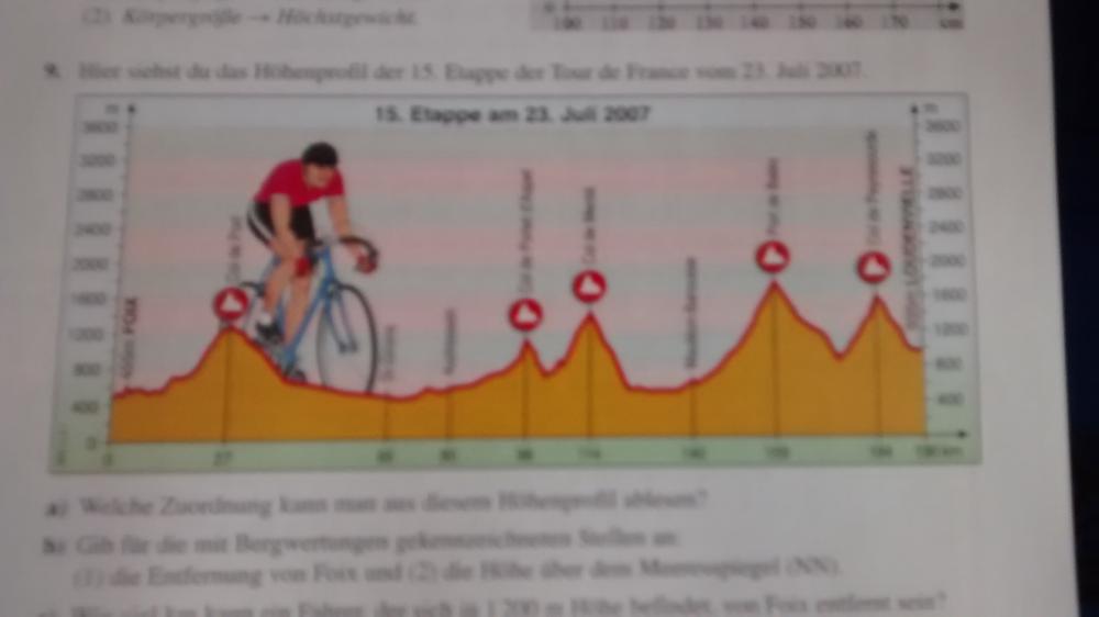 - Gib für die mit Bergwertungen gekennzeichneten Stellen an: (1) die Entfernung vom Foix (2) die Höhe über dem Meeresspiegel