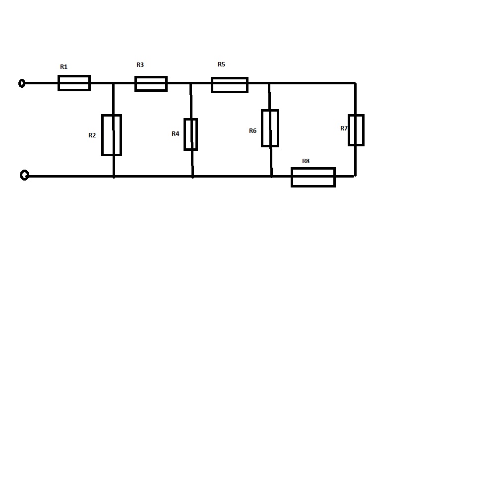 Geg. R1 = 100ohm, R2 = 500ohm, R3 = 200ohm, R4 = 200ohm, R5, 100ohm, R6 = 150ohm, R7 = 50ohm, R8 = 50ohm, U6 = 10v