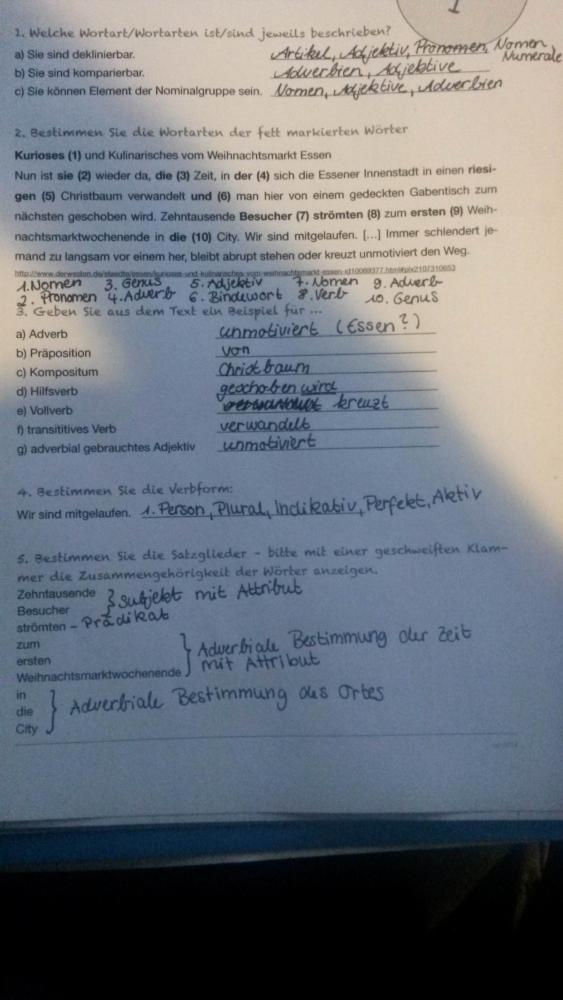 Wortarten und Satzglieder Grammatik