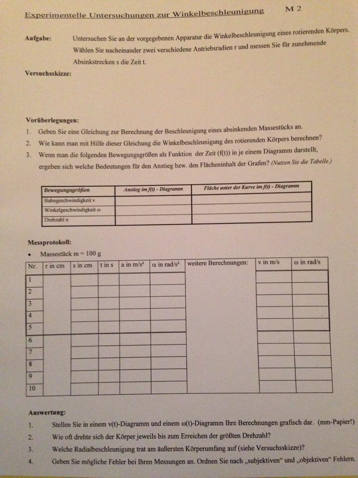 Experimentelle Untersuchungen zur Winkelbeschleunigung