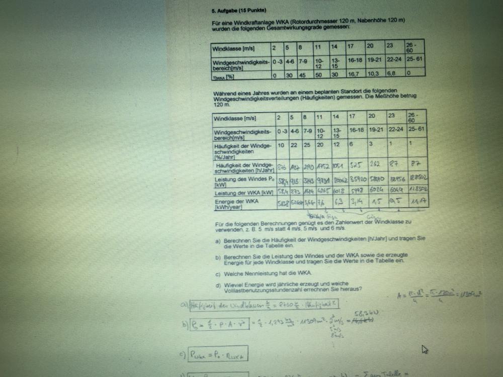 29. Juli 2015 um 01:02 #1 Hallo kann mir jemand erklären wie ich hier bei der c) die Nennleistung des Windes berechnen kann ?Ich habe die Müsterlösung angehängt , aber ich verstehe nicht wie die auf die Werte kommen .Pwka = P0*nwkaAber ich habe ja nur das P0 ausgerechnet ?Wie kriege ich das nwka ?