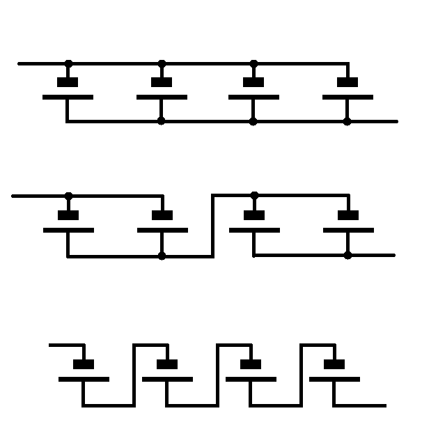 5)Wie muss man vier Batterien mit je U=4,5V schalten, damit man eine Gesamtspannung von
