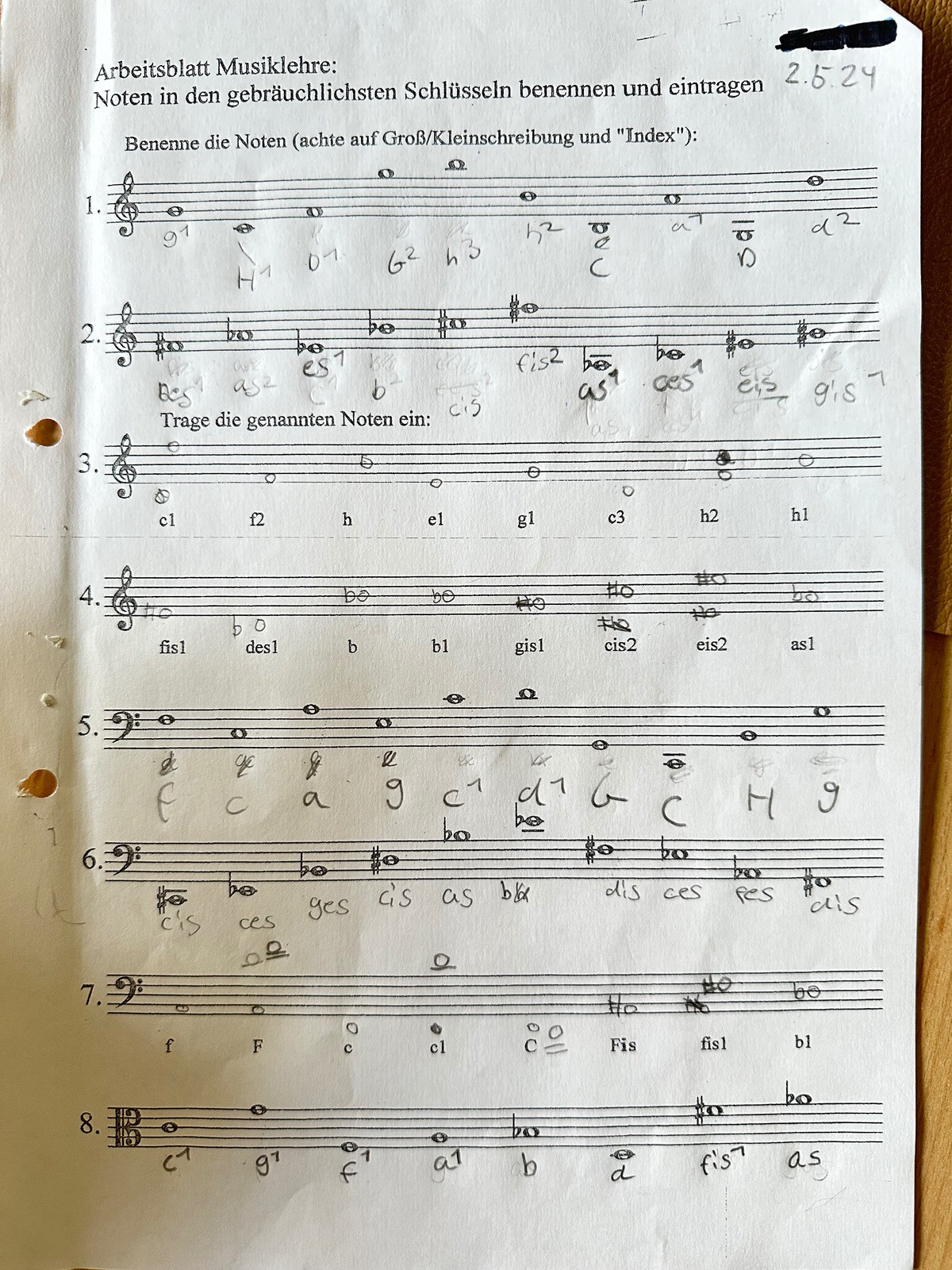 Noten in Schlüssel benennen