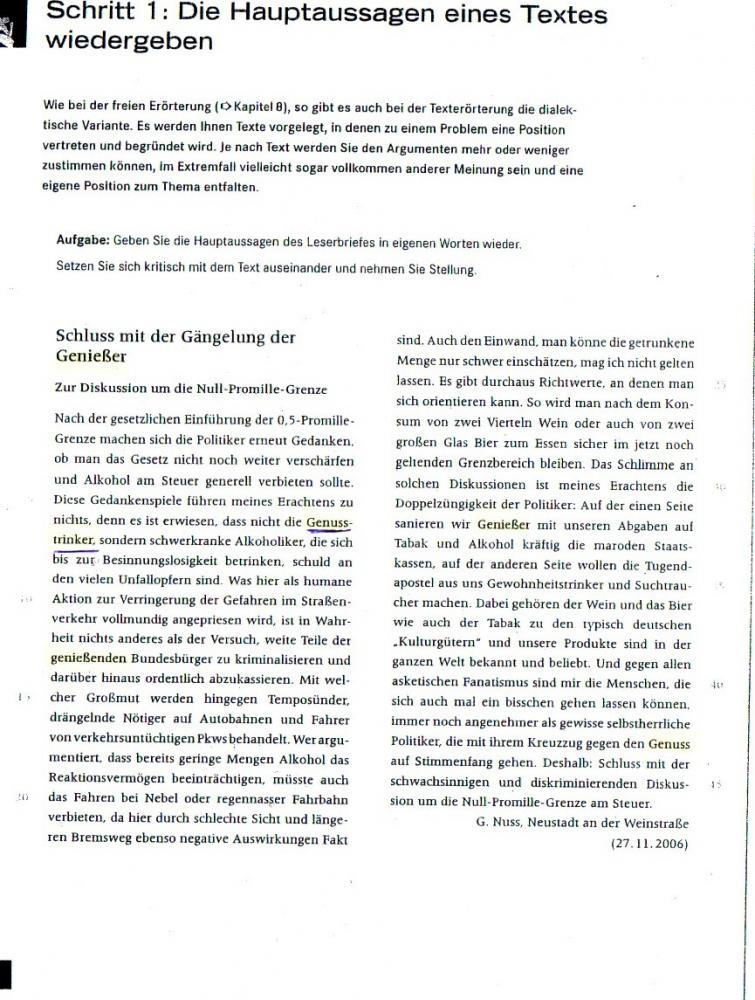 Es geht darum dass wir ein Textbeispiel Argumentieren sollen usw.