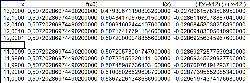 Jetzt kommt es jedoch zu dem eigentlichem Problem. Ich möchte nun die Momentane Zerfallsrate eines Elements nach 12 Sekunden bestimmen. Dafür habe ich wieder eine Tabelle angelegt: