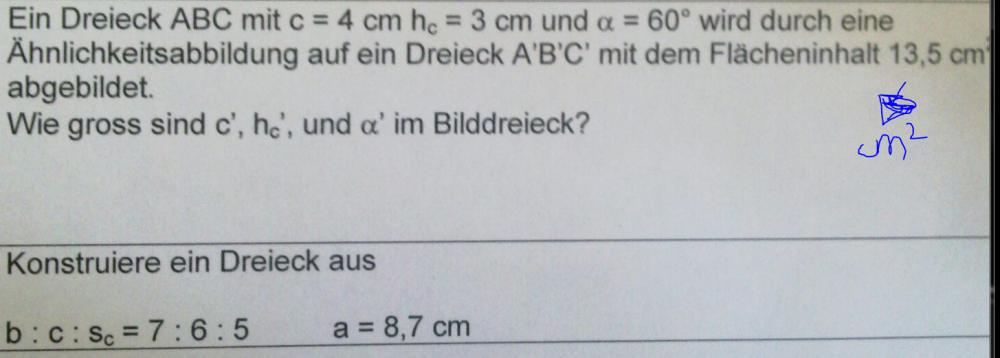 die fläche des ersten dreiecks is 6 , muss ich jetzt nicht13.5 /6 machen um den streckungsfaktor zu bekommen ? der wäre dan 2.25 -