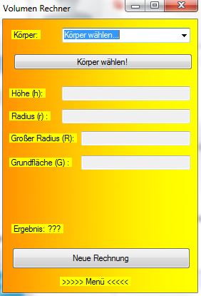 Da mich immer wieder viele User, nicht nur hier im Forum, gefragt haben wie man denn das Volumen von Körpern ausrechnet habe ich jetzt mein Programm dazu