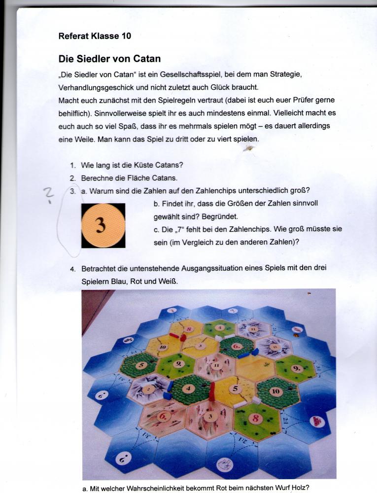 Die erste Frage ist Wie lang ist die Küste Catan?. (Siehe Bild)