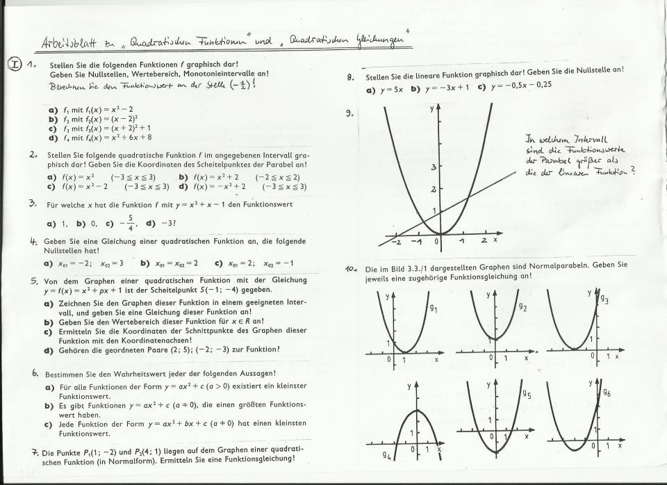 Das Thema: Quadratische Funktionen und Quadratische Gleichungen..