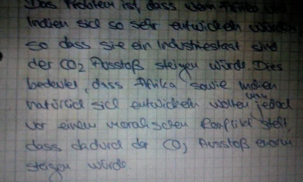 also die frage: in afrika und indien verbraucht man pro kopf ca. ein zehntel der energie eines bewohners von deutschland.das gleiche verhältnis gilt auch für den co2 ausstoß. beschreibe das darin enthaltene moralische problem